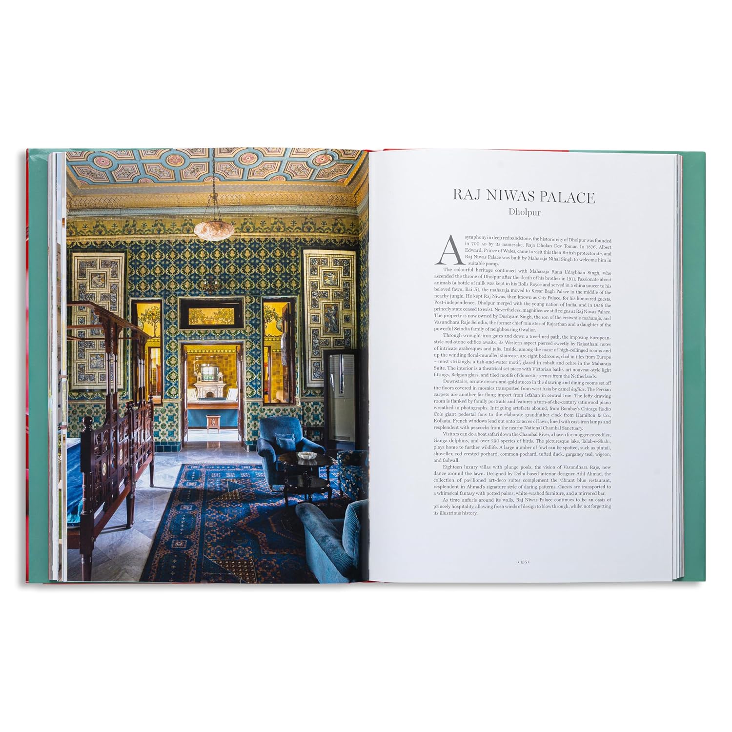 This is a languid and sensuous look at some of the loveliest hotels in India. Experience Mughal hunting baghs, laced with pavilions and frangipani, soak up the salt-scented charm of seafront villas and gaze upon urban boutique hotels. Every page glints with the promise of a new discovery. The lighting is atmospheric and the textiles and paintings ravish the eye. Each new look reveals an unseen detail – a Nizam’s crystal fan, a serene carved Nandi, and a mother-of-pearl reflection of the Taj Mahal in a frescoed bathroom.