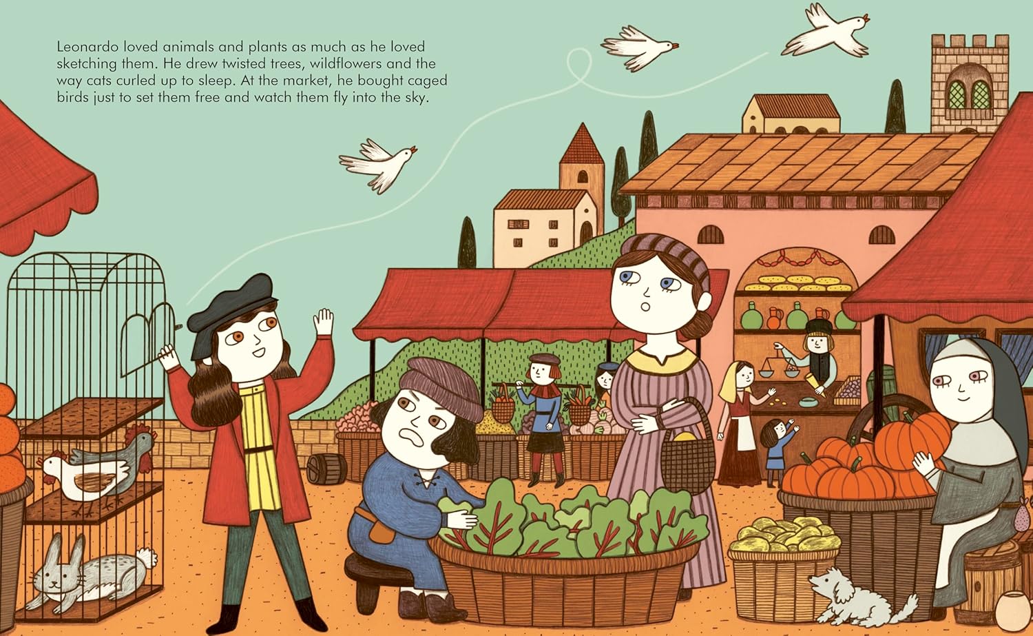 Young readers will follow Leonardo from his childhood in the small village of Vinci, Italy, where he sketched animals and dreamed of flying machines, to his training as an artist and his creation of world-famous paintings like the Mona Lisa and The Last Supper. Along the way, they’ll see how his endless imagination and fascination with nature shaped his life’s work. But his talents didn’t stop there…