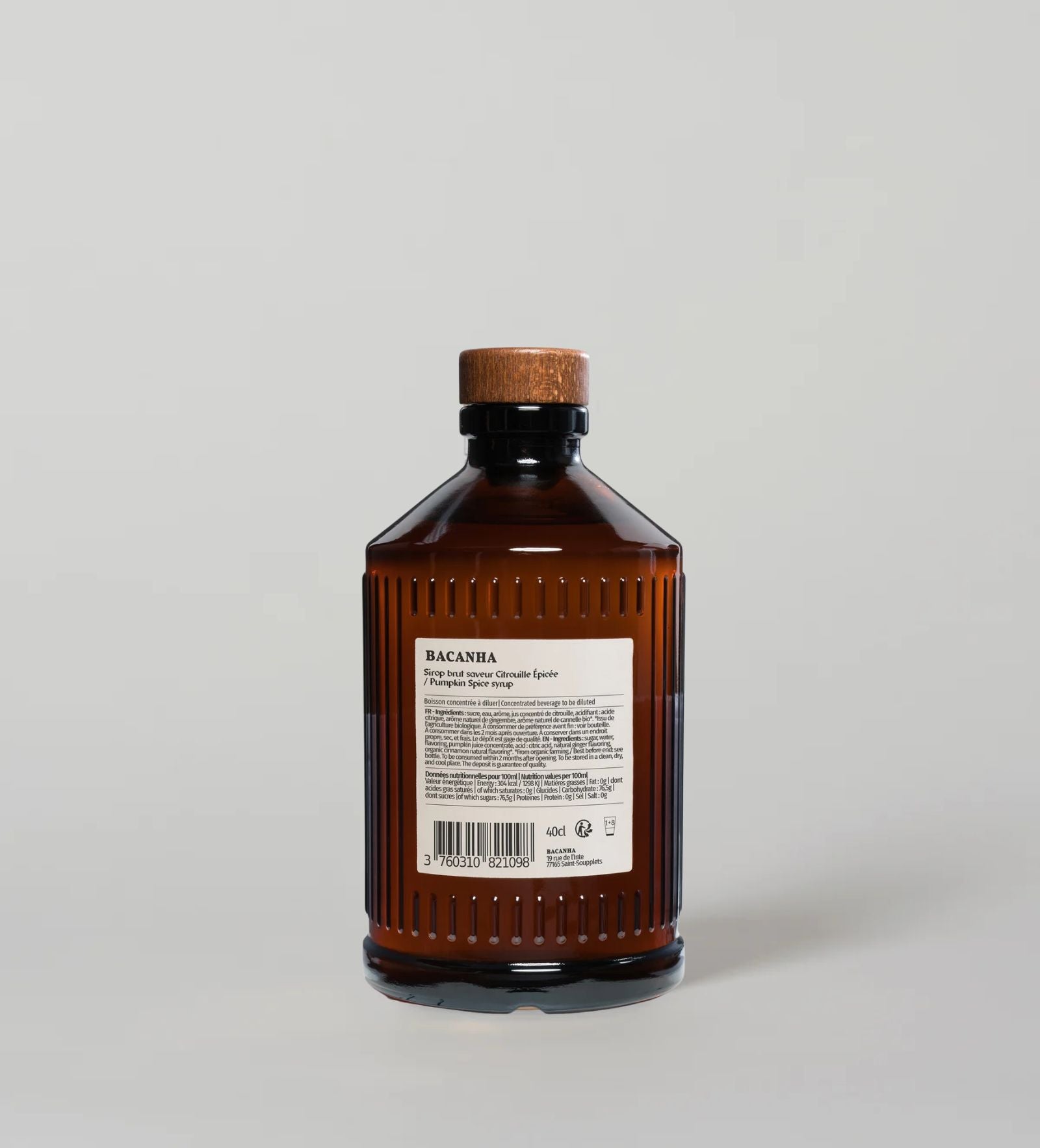 Nutritional information for the raw Spiced Pumpkin syrup: Nutritional values per 100 ml — Energy: 304 kcal / 1298 kJ | Fat: 0 g | of which saturates: 0 g | Carbohydrates: 76.5 g | of which sugars: 76.5 g | Protein: 0 g | Salt: 0 g